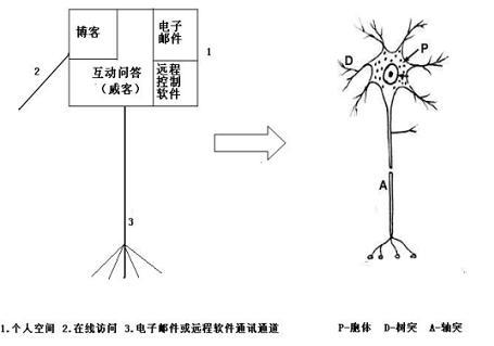在相關(guān)論文中,我們也繪制了更為詳細的互聯(lián)網(wǎng)映射型虛擬神經(jīng)元,它是以目前互聯(lián)網(wǎng)個人空間應用為基礎,擴充并預言了成熟后的互聯(lián)網(wǎng)神經(jīng)元結(jié)構(gòu)。