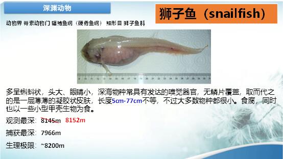 在2016年的考察中,首先對(duì)不同深度的海水波速進(jìn)行測(cè)量,其次是用攝像機(jī)在海底拍攝,收集深海的動(dòng)物和植物的情況,再次就是收集活的動(dòng)物。我們收集到在8000米以下生活的獅子魚和鉤蝦??梢哉f(shuō),我國(guó)對(duì)深海的生物研究有發(fā)言權(quán)了。