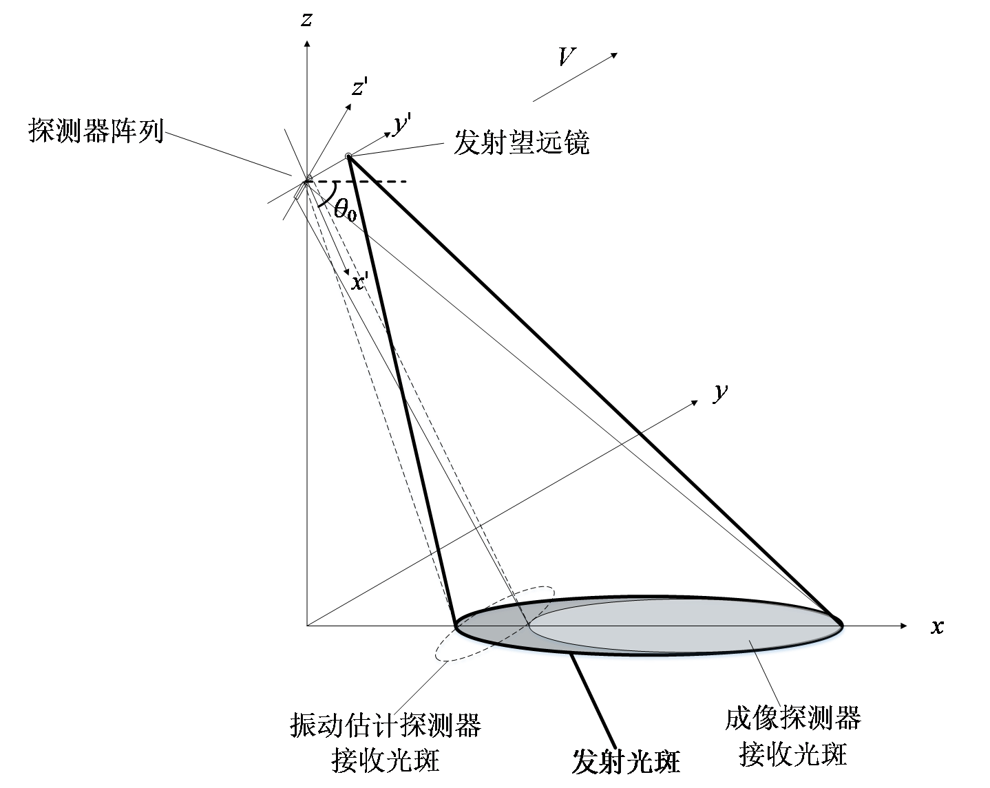 圖3 機(jī)載SAL發(fā)射和接收視場(chǎng)/運(yùn)補(bǔ)和成像探測(cè)器觀測(cè)幾何關(guān)系