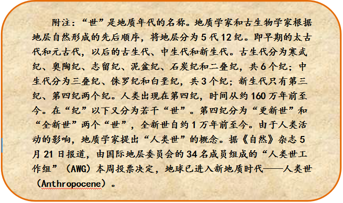 在2000年的一個國際會議上,1995年諾貝爾化學獎得主保羅-克魯岑提出,當今人類活動對自然環(huán)境的影響已經(jīng)超過了自然狀態(tài)的變化,應該定義一個新的地質(zhì)時代,叫人類世。我國科學家劉東生院士參加了此會,回國后就極力推薦這個詞。